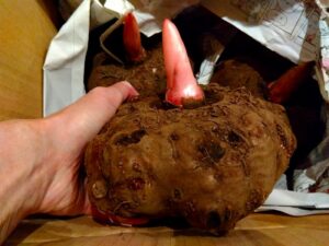自家製灰汁蒟蒻と自家製生麩と自然栽培三浦大根の天然日本胡桃味噌田楽