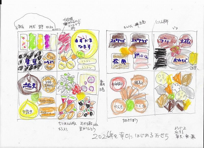 「2026年を幸せにする無添加おせち」のラフスケッチ