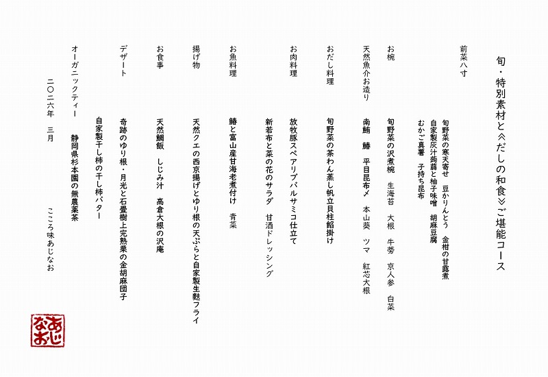 3月のメニューです。
