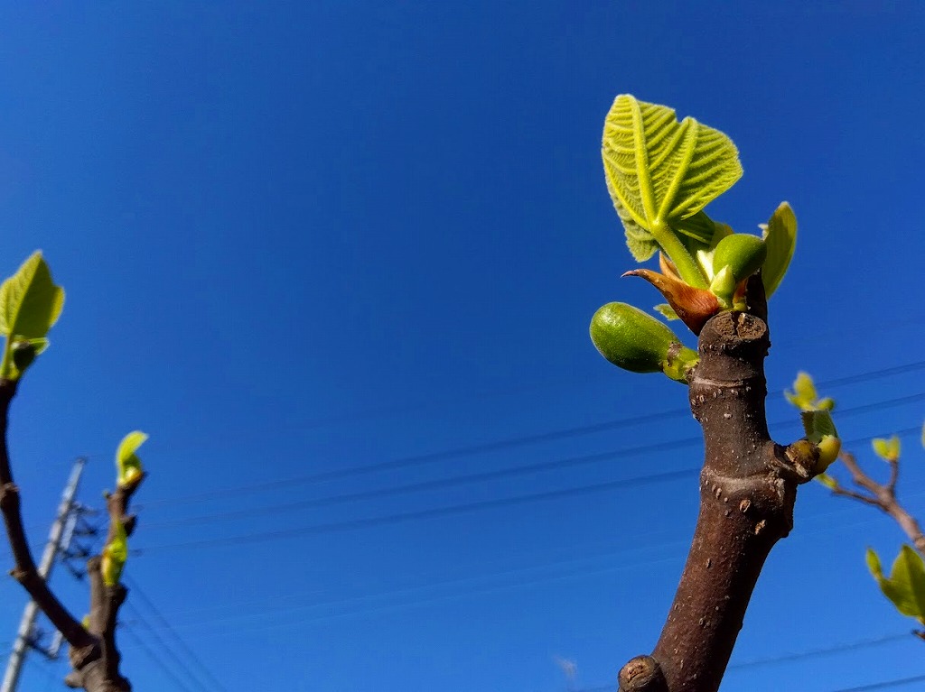 いちじくの新芽と青空って、どうしてこんなにお似合いなのだろう?