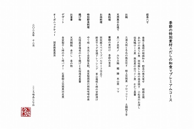 (こちらは基本ご予約不要です。内容・写真は2025年12月のコース内容例です。