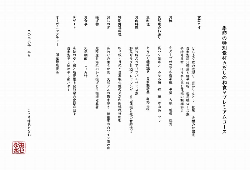 SS・季節の特別素材≪だしの和食≫プレミアムコース(2026年2月)