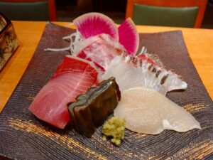 旬の天然の魚介類のお刺身
