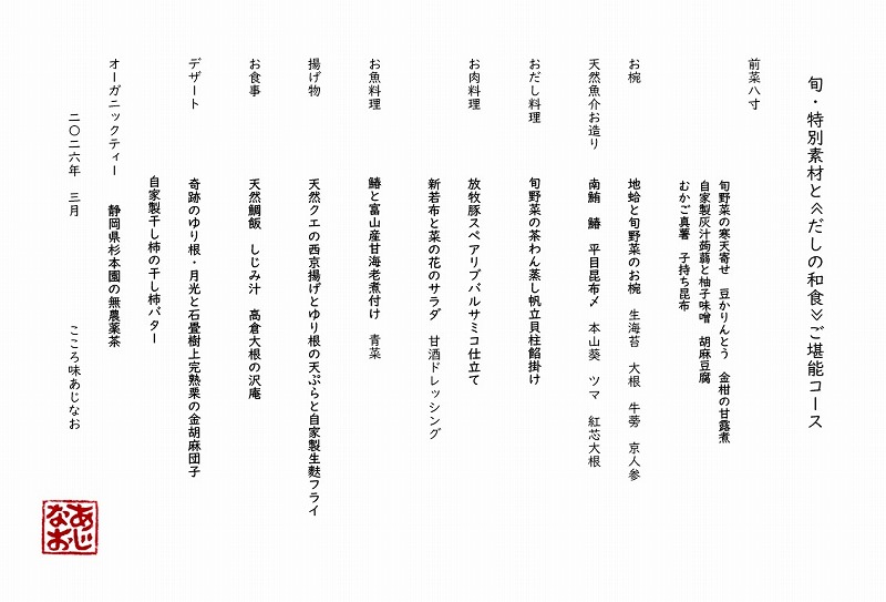 八王子めじろ台・無添加割烹レストラン≪だしの和食 あじなお≫
