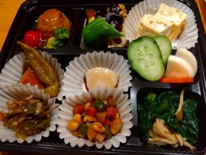 B・・・《だしの和食》テイクアウト弁当(野菜主体の煮物たっぷりのお弁当です)・・・2400円(税込み2592円)